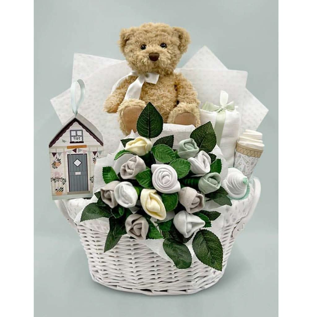 pWhether you're attending a baby shower, visiting a newborn in the hospital, or welcoming a colleague's new addition to the family, this personalized Bertie’s new baby gift basket is sure to delight. It's also an ideal choice for christenings, naming ceremonies, or any milestone moment in a baby's early life. Additionally, the Bertie’s new baby gift basket makes for a thoughtful and heartfelt gift for distant friends or relatives, allowing you to send your love and congratulations across any distance. With its blend of elegance and practicality, this bouquet is a versatile and cherished gift suitable for any occasion celebrating the joy of new beginnings.