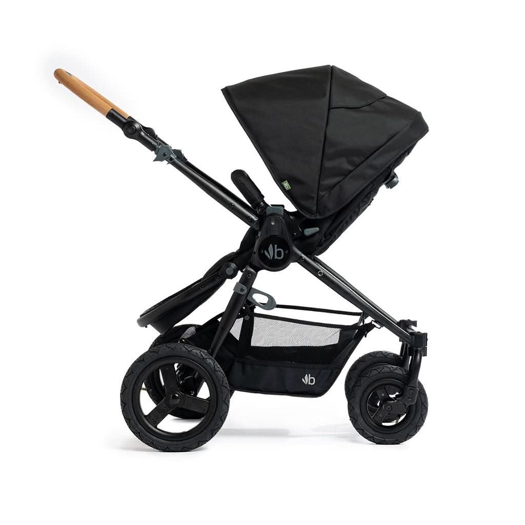 Bumbleride uses recycled PET fabrics, recycled fishing net components, and partners with a family-run eco-conscious factory.