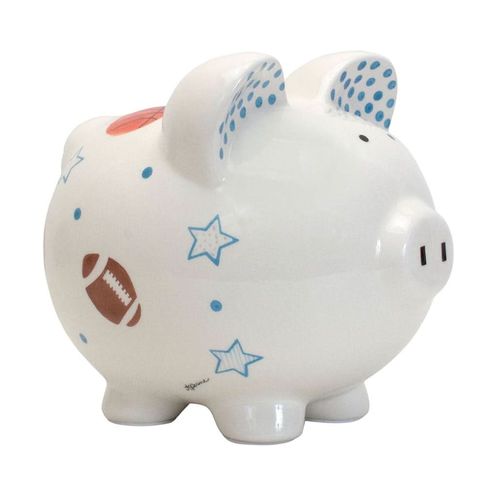The Sports Paper Star Piggy Bank stands at 8" L x 7" W x 7" H, making it the perfect size for a child's room or nursery. The piggy bank is coated with a shiny finish, which locks in the vibrant colors and ensures it remains looking fresh. Made from dolomite ceramic, known for its durability and sturdiness, this piggy bank offers both practicality and beauty. It is a wonderful gift for birthdays, baby showers, or as a special gift for any child learning about the importance of saving money. The sturdy construction also makes it a reliable long-term investment, capable of withstanding frequent handling.