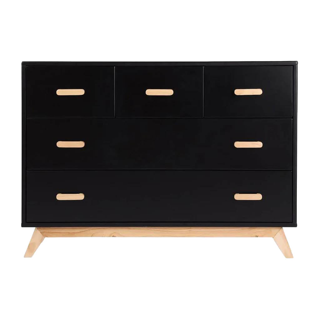 The DaDaDa Soho 5-Drawer Dresser is designed for parents and families looking for a stylish, functional, and safe storage solution in the nursery or any living space. This modern 47” dresser solves the common challenges of cluttered spaces by providing ample storage with five extra-deep drawers, helping parents keep baby essentials organized while maintaining a sleek and timeless aesthetic. Its classic mid-century style complements the Soho 3-in-1 Crib perfectly or adds a sophisticated touch to any room as a standalone piece.