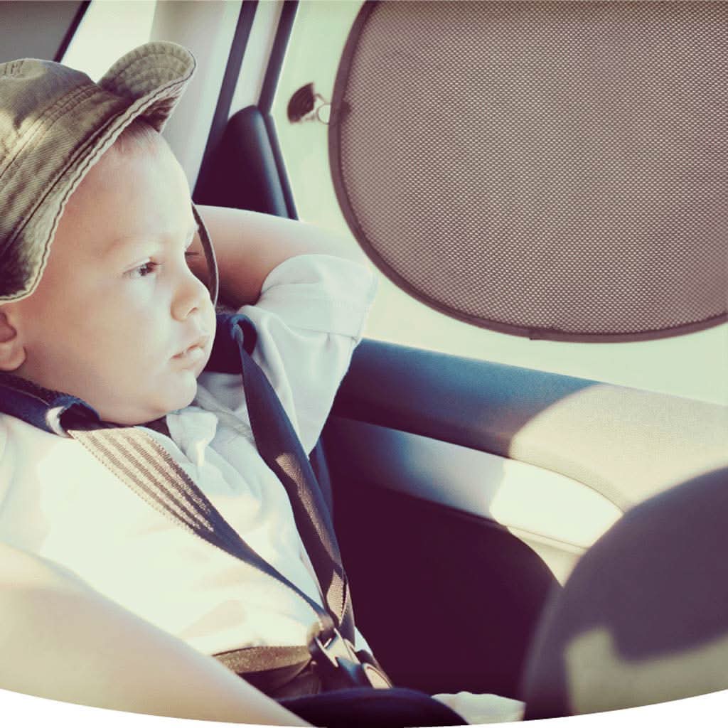 Protect your rear-facing baby from rear window sun and glare while maintaining driver visibility with the DIONO Sun Stoppers™ Sun Shade. The pop-open design always holds its shape for a smooth, wrinkle free look and a secure installation. Sized to fit all cars, SUVs and vans.