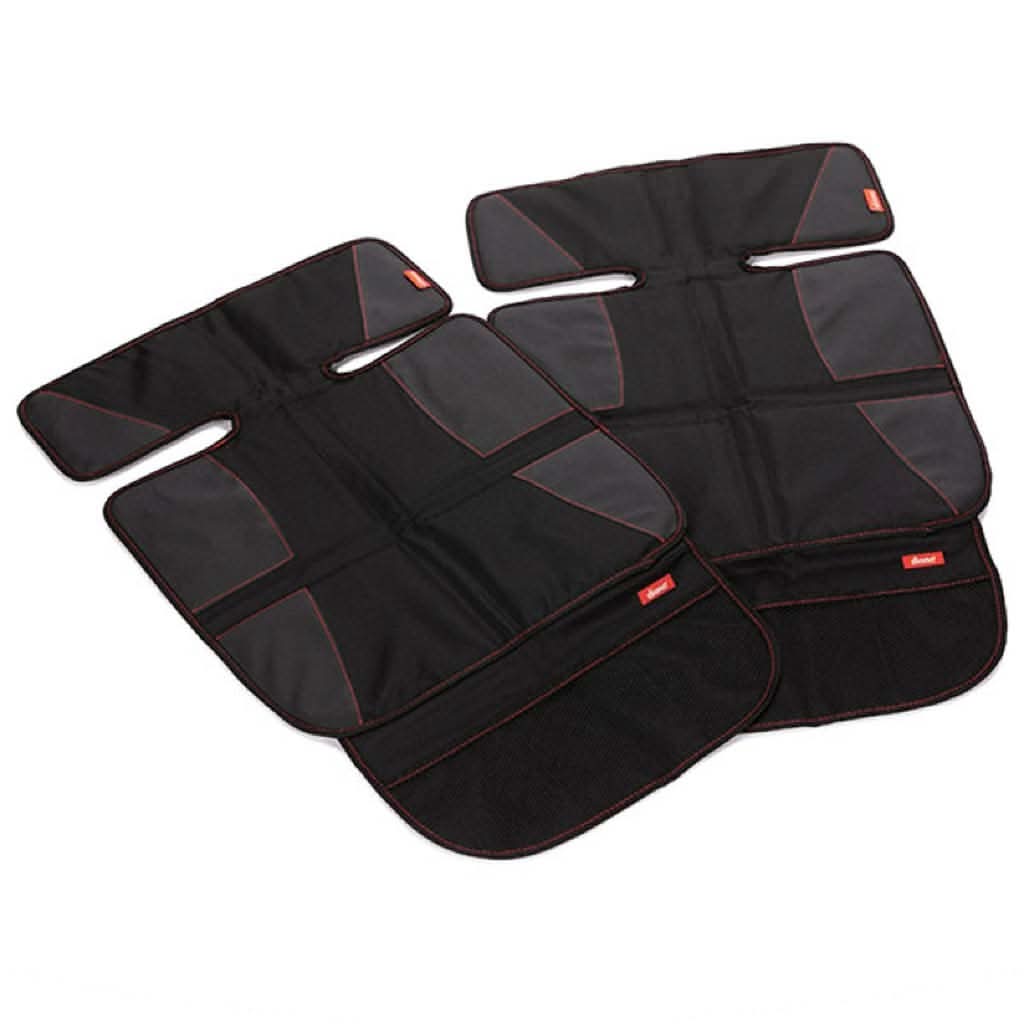 The Diono Super Mat protects your automobile seat upholstery from the permanent indentations caused by a child safety seat. With individual panels of high-density foam, the Super Mat will contour to your vehicle's seat while the non-slip surfaces on both the top and bottom prevent slipping of the child safety seat. Included is a front organizer pocket to keep essentials handy. Compatible with all infant carriers, car seats and booster seats, including those with the latch system of attachment. Sold in packs of two for when one just isn't enoughDiono's Super Mat prevents car seat slip and protects your vehicle's seat from wear and tear. Individual panels of high density foam contour to your vehicle seat and protect the upholstery from indentations caused by child safety seats. Front organizer pockets keep items close and the waterproof fabric is easy to clean. LATCH compatible, Super Mat works with all infant carriers, convertible car seats and booster seats.