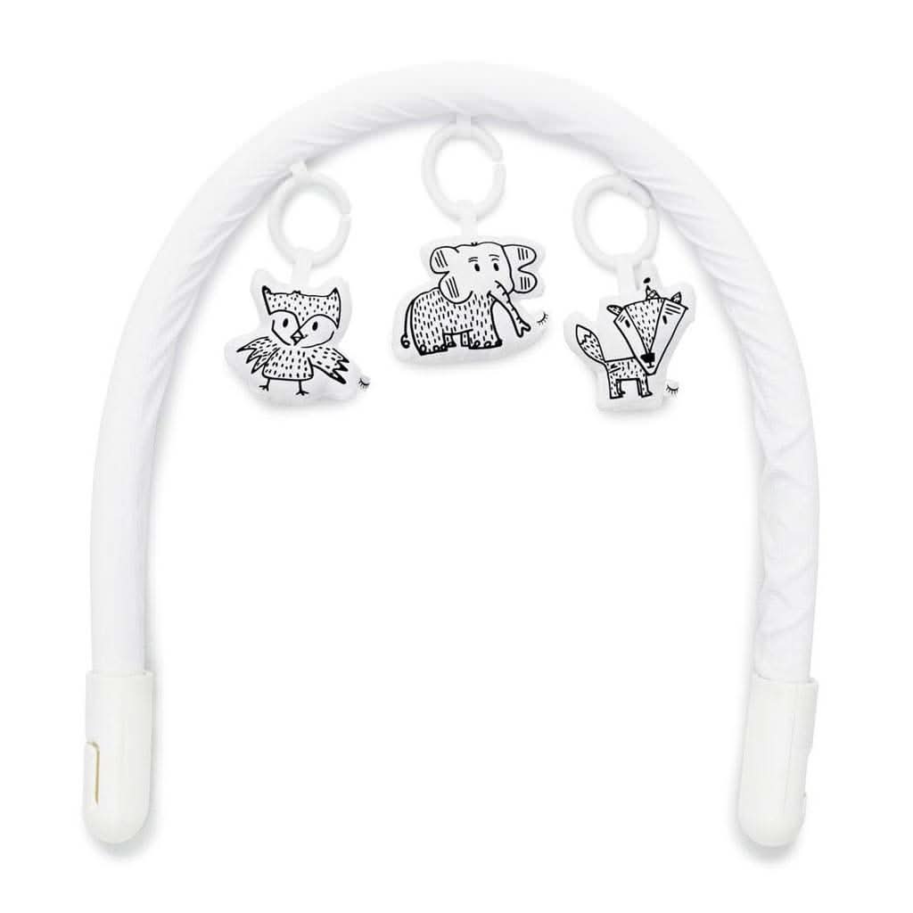 DockATot Deluxe+ Dock Toy Arch and Cheeky Chums Toy Set, Pristine White. A bundled of joy! Making it playful with a mobile toy arch and toy set is DockATot's best-selling style. Good fun for baby, good design for moms. Toy arch in Pristine White: The mobile toy arch is the perfect complement to DockATot Deluxe+ Pods. The mobile toy arch allows babies to be actively engaged and entertained while safely lounging. Babies will love reaching for and playing with the dangling crinkly toys.