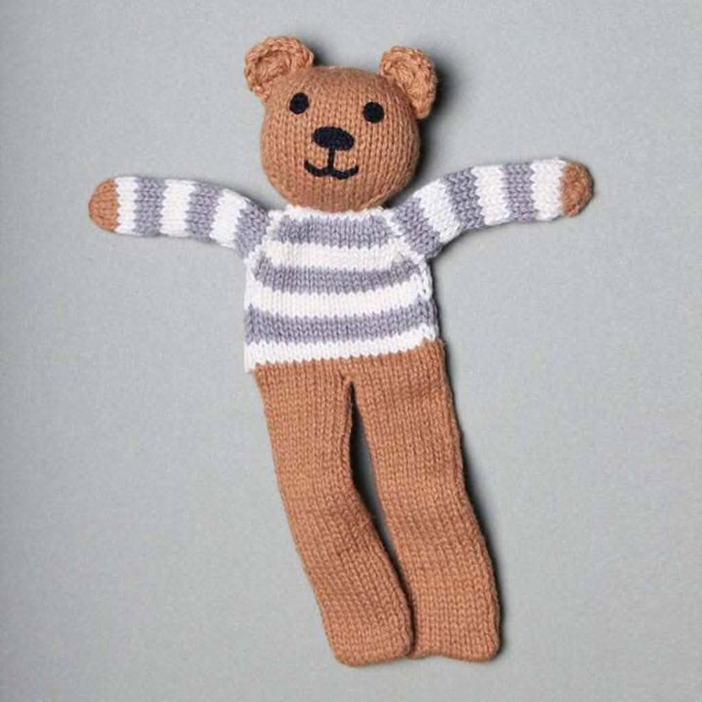 Estella's stripe brown baby bear soother is an elegant little comforter. This baby comfort toy is graphic, bold and attractive - a perfect distraction for baby during diaper changes, travel or when they need soothing. Combine this soother with the matching infant romper or newborn hat or both for a luxurious baby gift.
