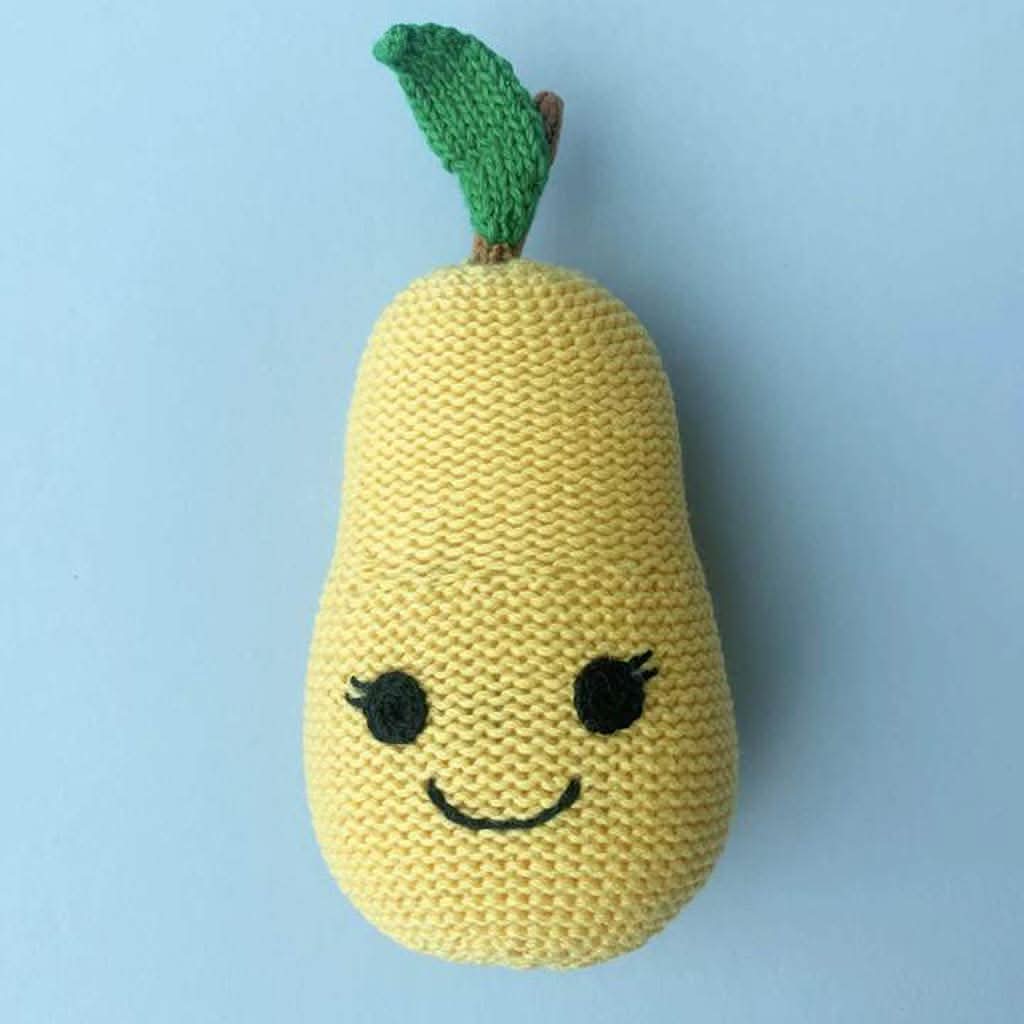 Sweet, soft and a perennial favorite: Pear organic pear rattle takes its inspiration straight from nature. Hand-knit with love in Peru from certified organic cotton, Pear beloved rattle smiles back at all of its admirers!