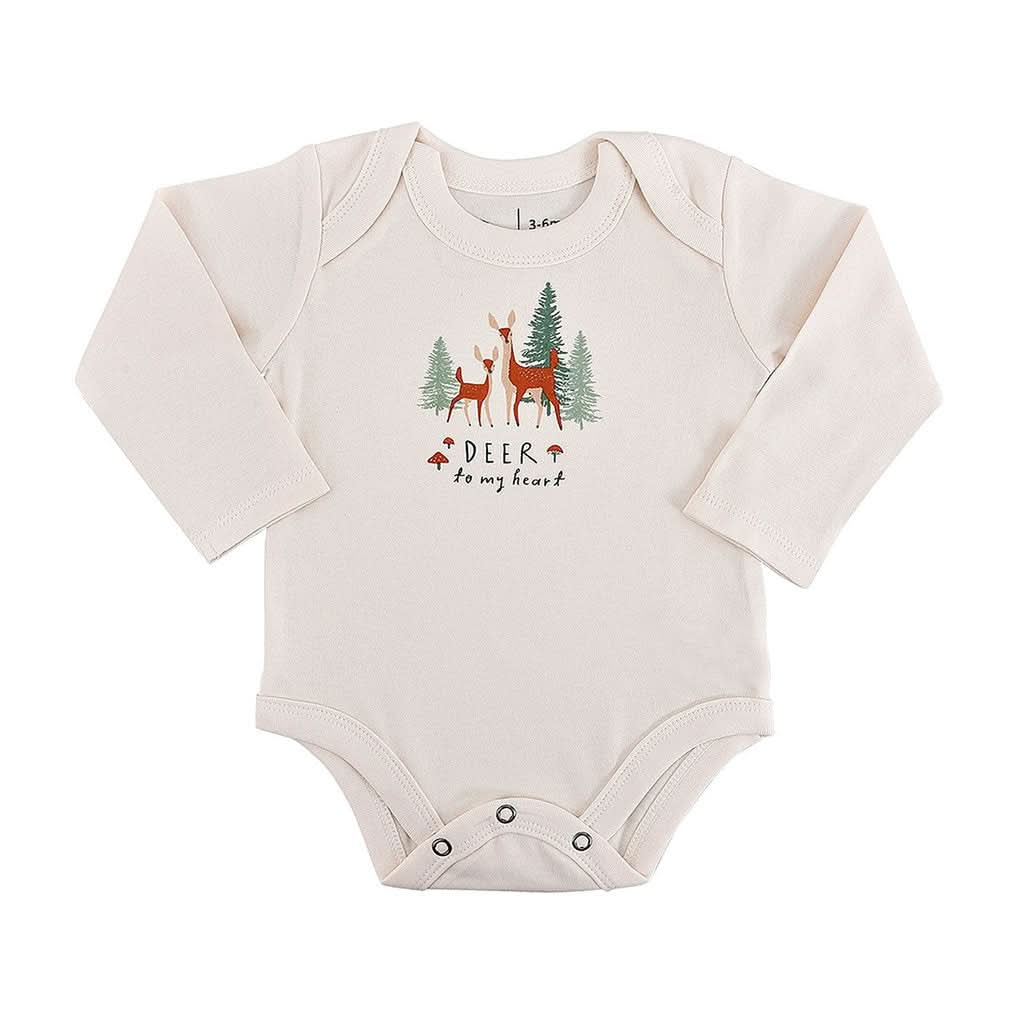 Charming Woodland Illustration: A playful and stylish woodland-themed graphic that adds a touch of fun to your baby’s outfit.