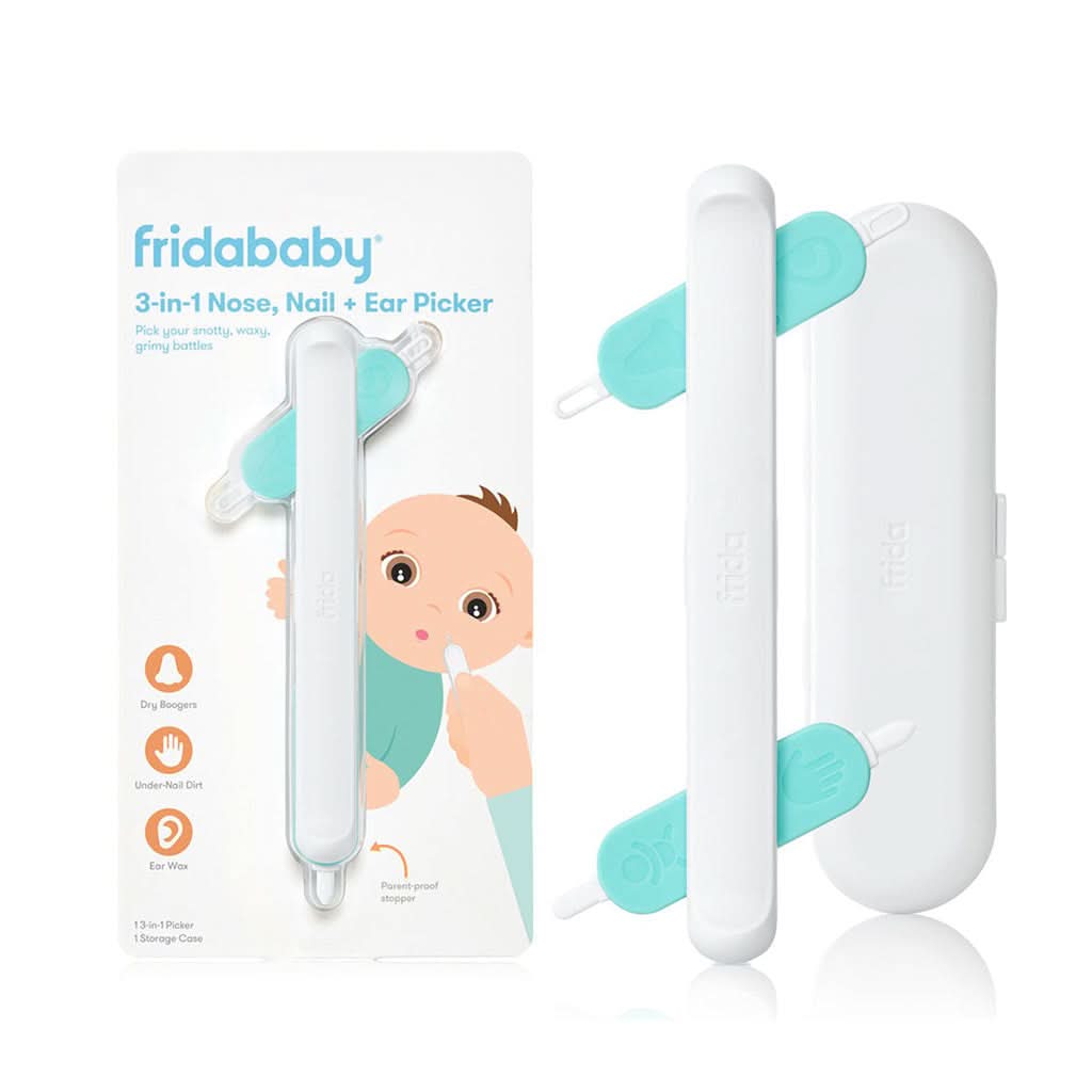 This 3-in-1 picker comes with four specially designed tips, each for a specific area: the nose tip to remove boogers, the nail tip to clean under nails, the ear tip for removing visible wax, and an extra utility tip that can be used for other areas like belly buttons or toes. The tool is dishwasher safe for easy cleaning and maintenance, and it is compact enough for on-the-go use. It’s designed to make everyday tasks like cleaning baby’s nose and nails quick, safe, and comfortable, all while preventing parents from needing to use their pinky nail or other ineffective methods. With FridaBaby, keeping your baby fresh and comfortable has never been easier.
