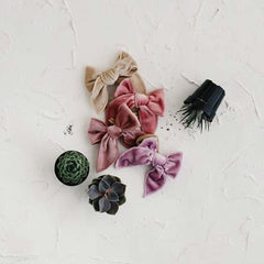 These Golden Dot Lane Edged Velvet Bow Headbands are the perfect accessory. Each bow can be made into a clip or nude nylon headband to stay securely in hair all day long. Each bow is 4”.