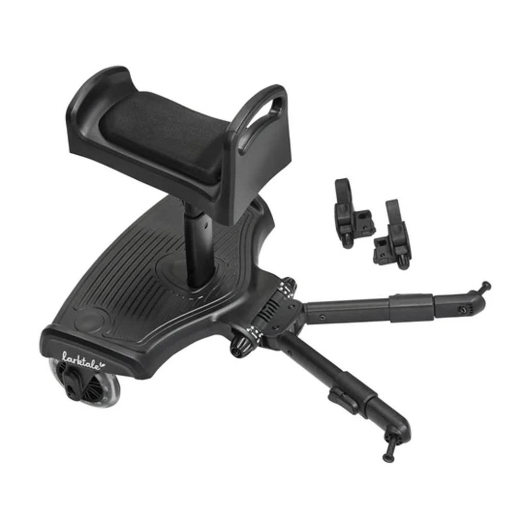 The Larktale Ride-Along Stroller Board features a 2-in-1 design that allows for either a comfortable saddle seat for younger children or a sturdy standing platform for older toddlers. The saddle seat can be easily removed, providing flexibility as your child grows. This board is compatible with most stroller brands and models, making it a versatile addition to your current stroller system. With a weight capacity of 48 lbs, it accommodates toddlers who have outgrown their stroller or those who prefer to stand while exploring the world. The quick-release levers make it easy to attach and remove, and it can be conveniently folded when not in use.