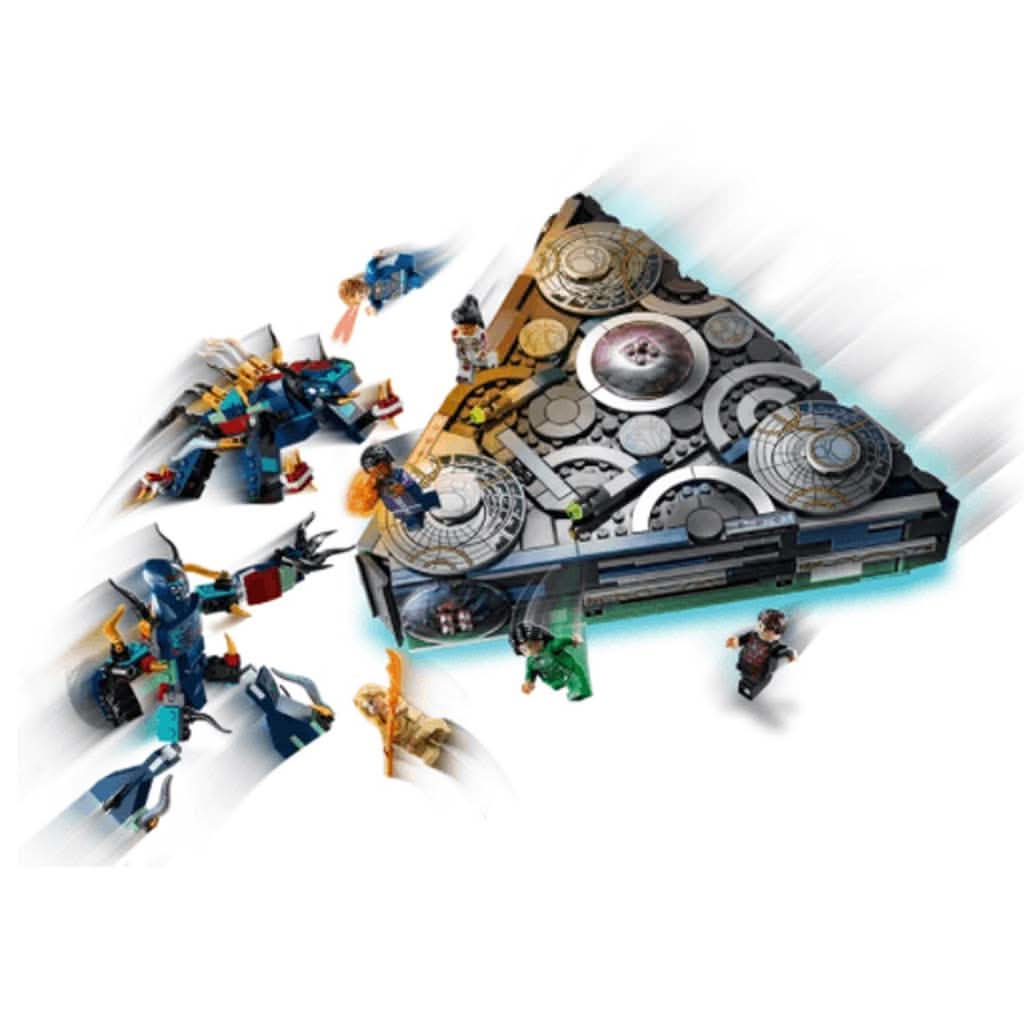 Includes 6 minifigures – Makkari, Ikaris, Thena, Sersi and the exclusive Druig and Phastos – 2 Deviant action figures, including Kro, the Deviant leader, a spaceship, weapons and accessories.