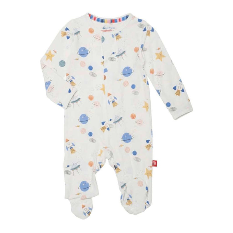 The Magnetic Me Stellar Tails Modal Magnetic Parent Favorite Footie is designed for parents seeking an everyday essential for their baby. This versatile footie is perfect for day and night wear, featuring magnetic closures that make dressing a breeze. The magnets are quick, quiet, and especially helpful for middle-of-the-night changes, ensuring minimal disruption to your baby’s sleep.