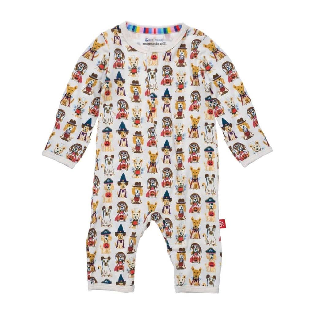 Best-selling magnetic footie and designed it as a one-piece without the feet. Magnetic Me Tricks Or Treats Magnetic Coverall magnetic closures line the front to ensure quick and quiet changes, while eco-friendly TENCEL™ modal makes this baby wardrobe staple silky soft, breathable, and gentle on sensitive skin. Temperature-regulating properties will keep you warm in winter, cool in summer, and oh-so-comfortable year round.