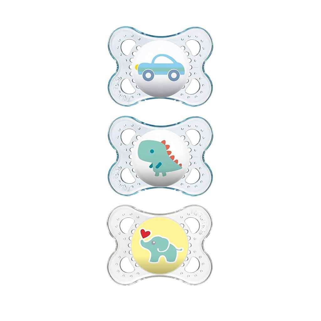 Choose our small and lightweight pacifiers to keep baby calm with a pacifier you will both love. MAM pacifiers feature an innovative nipple designed to promote healthy oral development so you can soothe your baby with confidence. Baby will love latching onto the soothing pacifier nipple that, with the help of a built-in air channel, naturally flattens and extends when sucked, mimicking a human nipple during breastfeeding.