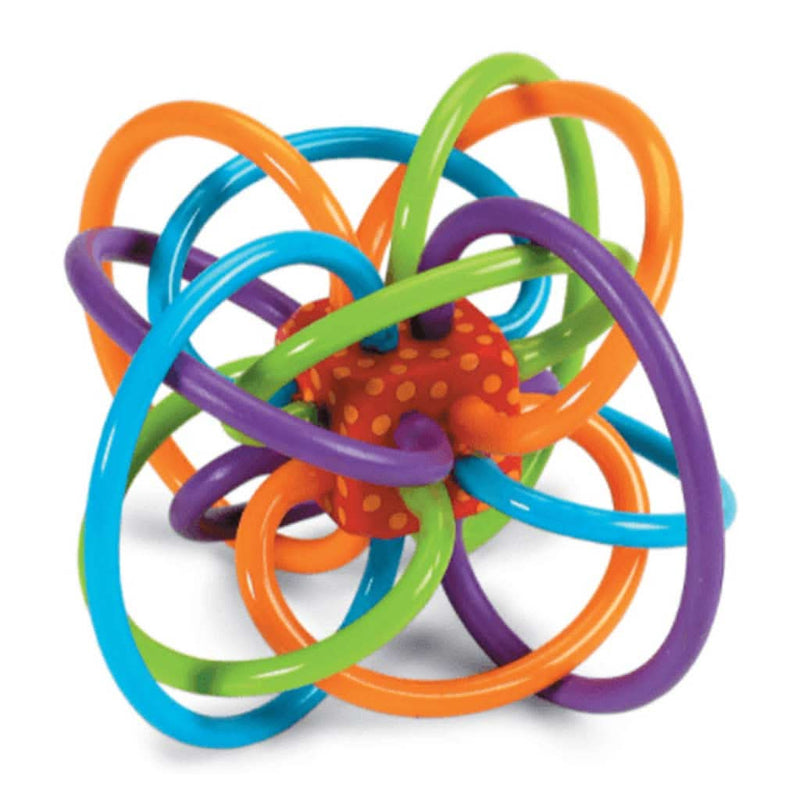 Colorful loops made from soft, pliable plastic are easy to grasp and hold, plus caregivers can refrigerate it for a soothing teether. The Manhattan Toy Winkel teether rattle is a must-have for newborns and teething babies. Made of polyurethane tubing and therefore does not contain BPA or PVC. It also meets the CPSC and European requirements for phthalates. Named a finalist for ASTRA's Best Toys for Kids, winner of an Oppenheim Toy Portfolio Award, Hot Diggity Award Winner, Finalist for a Cribsie Award