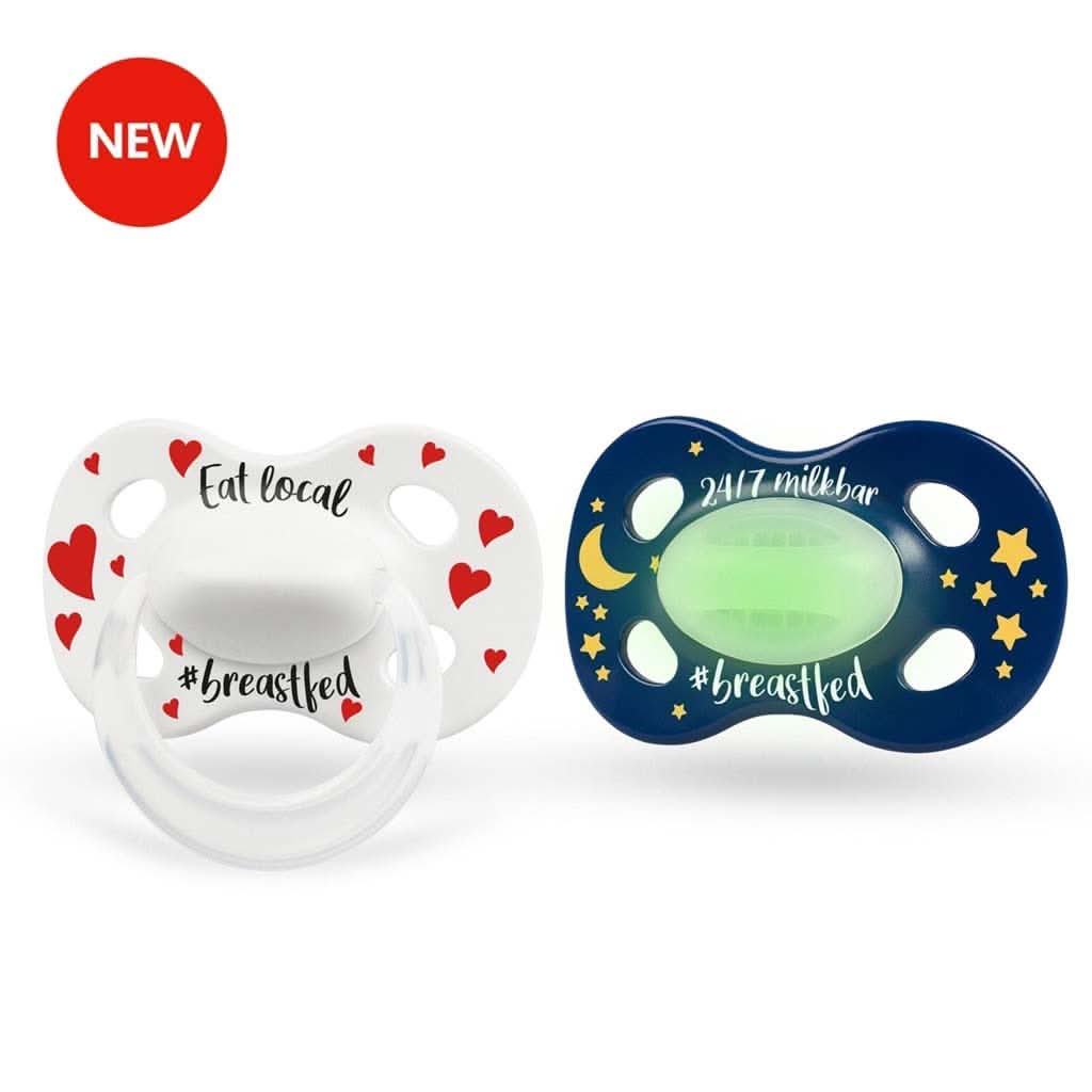Medela Baby Day & Night Pacifier, Eat Local Design, 2 Pack, one for day and one for night. Suitable for ages 0-18+ months.