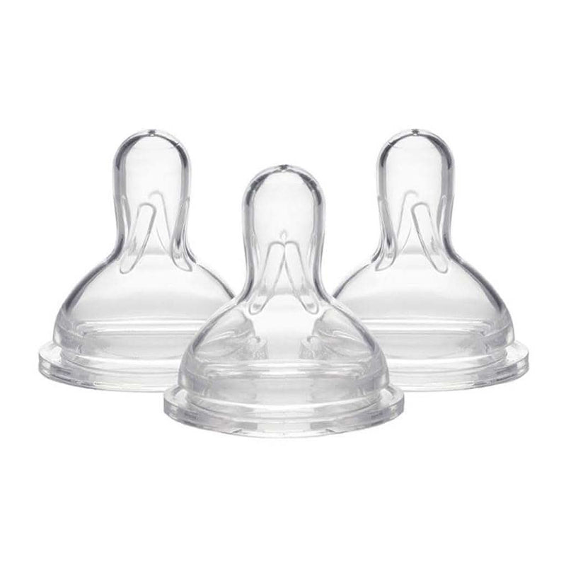 This set includes 3 - wide, medium-flow silicone nipples. Medela wide base silicone nipples are available in slow and medium flow for feeding newborns and infants.