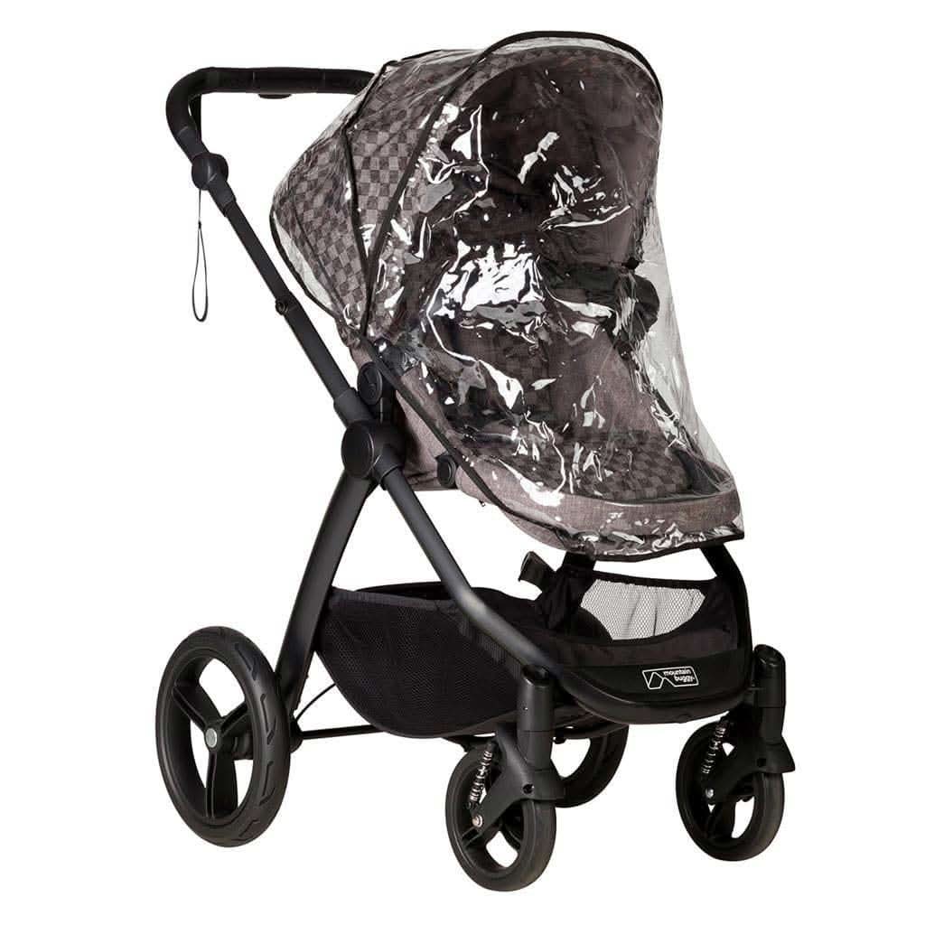 The Mountain Buggy V2 Cosmopolitan and Promenade Storm Cover is a custom fit PVC storm, wind and rain cover for the cosmopolitan lux, cosmopolitan, smart lux, promenade buggy.