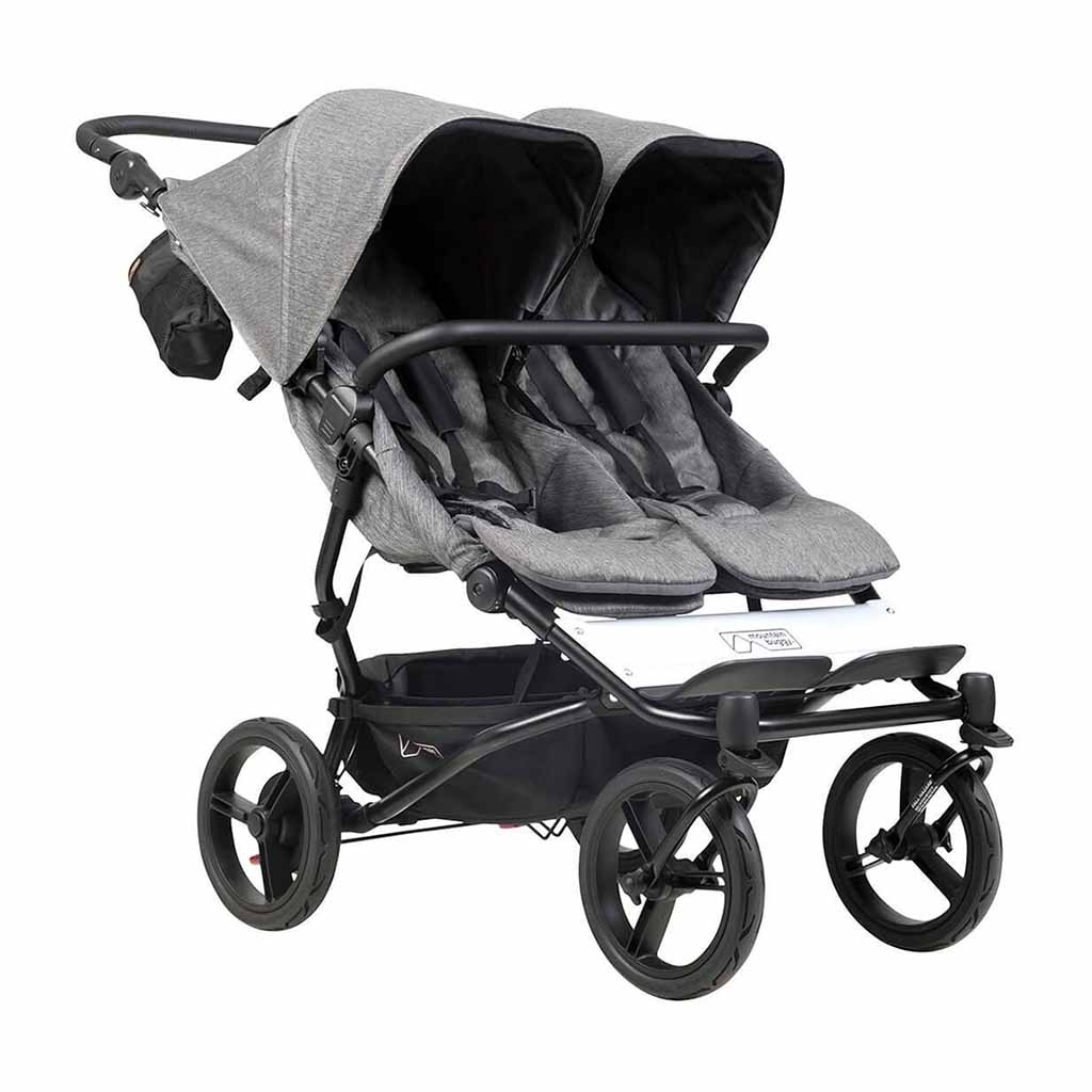 The Mountain Buggy V3.2 Duet Luxury With Double Satchel And Carrycot, Herringbone is designed for parents of twins or siblings seeking a compact, stylish, and versatile solution that handles all terrains with ease. This award-winning side-by-side buggy offers the same wheelbase width as a single stroller, ensuring maneuverability in tight urban spaces while maintaining the rugged durability for mountain trails. Built on the trusted engineering of the Urban Jungle™ Luxury platform, it seamlessly blends premium performance with refined aesthetics. From newborn to toddler, it offers comfort, parent-facing options, and advanced safety, all within an elegantly coordinated bundle, making it the ultimate go-anywhere companion for growing families.