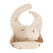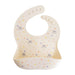The bib features timeless Swedish-inspired patterns that vary across Mushie’s collection.