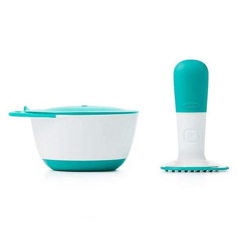 The handy OXO Tot Food Masher makes mashing food for your baby super easy. Steep sides prevent food from slipping out of the bowl while mashing and innovative teeth on the edge of masher help scoop food out when ready.