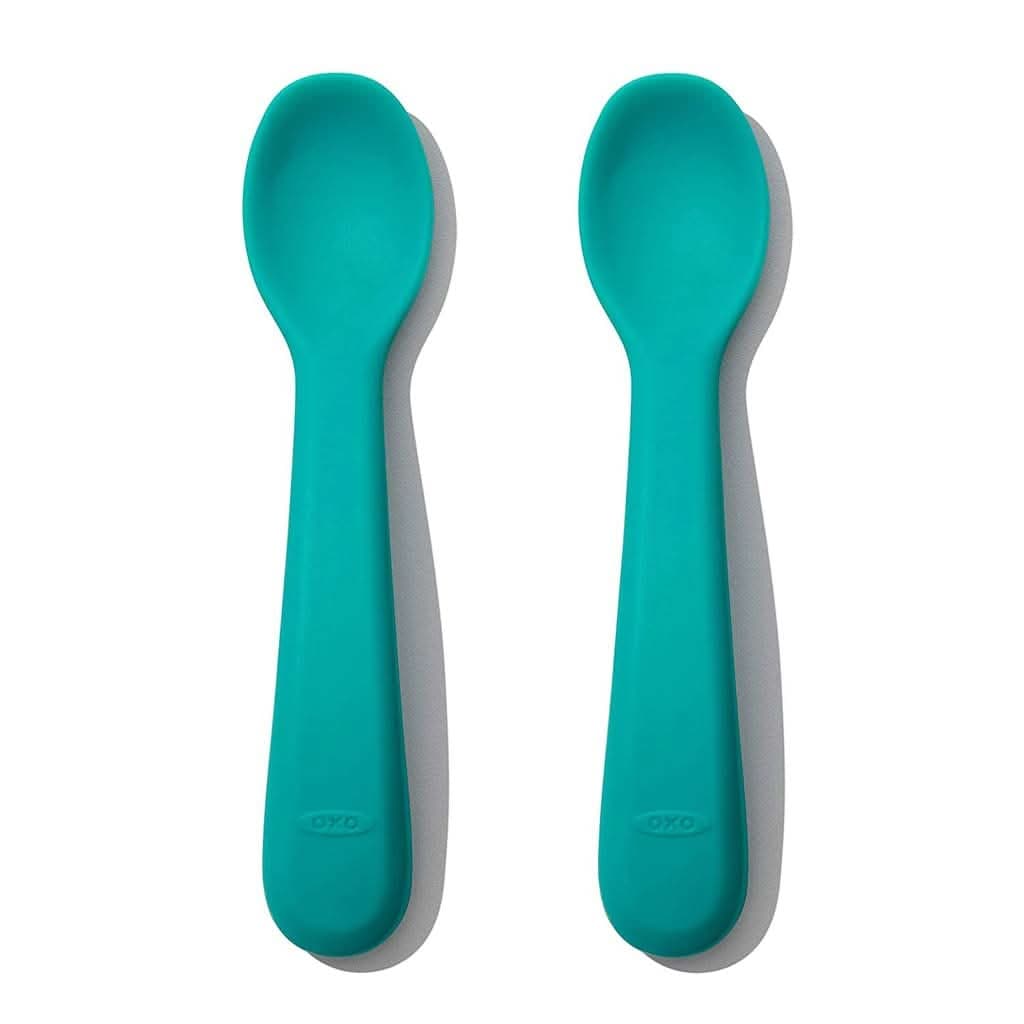 Tot Silicone Spoons are the ideal first utensil for babies and toddlers learning to feed themselves. Made with food-safe, BPA-free silicone, the soft spoon heads flex for comfort in tiny mouths — especially important for sensitive gums during teething. The deep head helps new eaters get more food onto the spoon and into their mouths for confidence-building success at mealtime. The rounded handle is easy for small hands to grip, while the anti-roll design means it stays put on the table.