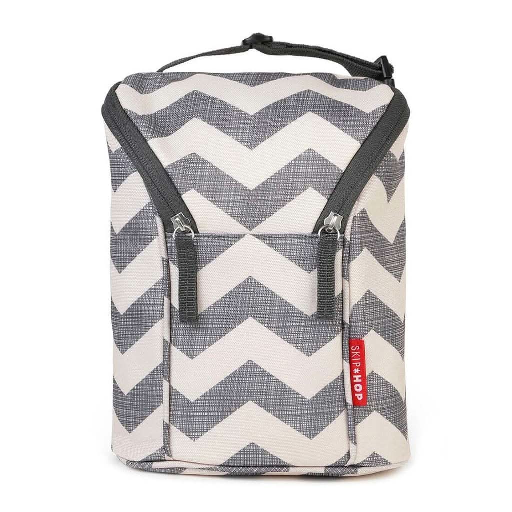 Skip Hop Grab & Go Double Bottle Bag, Chevron keeps two bottles warm or cold with an included freezer pack. With an insulated interior, it’s also great for keeping sippy cups and snacks chilled for hours.