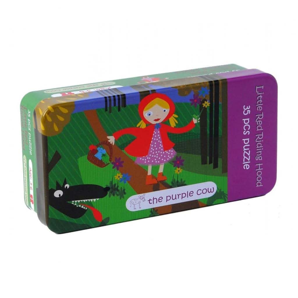 The Purple Cow Fairy Tale Little Red Riding Hood Jigsaw Puzzle brings you some of the most enchanting fairy tales of all times! illustrated by the renowned Australian artist Inna Seminar, the fairy tale puzzle collection features a new artistic interpretation of eight fairy tale classics. A variety of jigsaw puzzles from 24 to 60 pieces, suitable for various age groups starting from 3 years old. Perfectly sized, this puzzle comes in a compact and funky tin box that conveniently fits into any travel bag or backpack.
