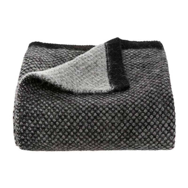 The Tuwi Inti Knitted Baby Blanket, Black /Grey has Baby Alpaca fiber is hypoallergenic, perfect for those with sensitive skin. Additionally, the material is lightweight, breathable and possesses outstanding thermal qualities. It keeps you warm in cold weather and cool in hot temperatures. The softness of baby alpaca fiber is comparable to cashmere, but it is more eco-friendly and sustainable.