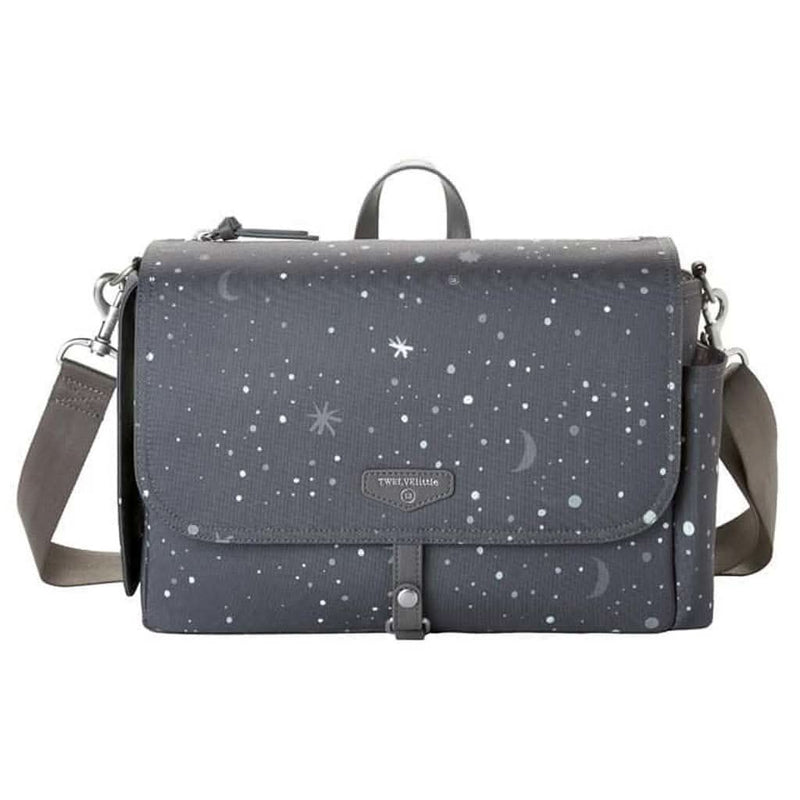 Twelvelittle On-The-Go Diaper Stroller Bag is the perfect hybrid between a traditional stroller caddy and a messenger style diaper bag.